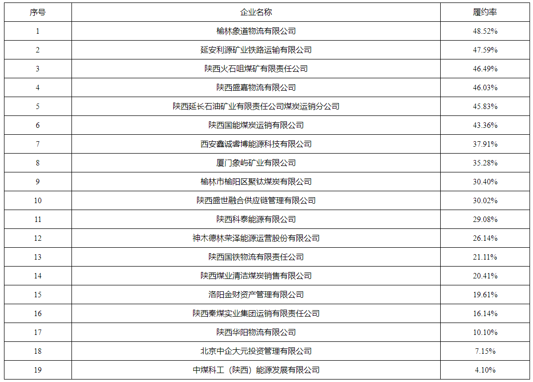 合同兌現(xiàn)較差,履約率低于50%的煤炭供應企業(yè)有: